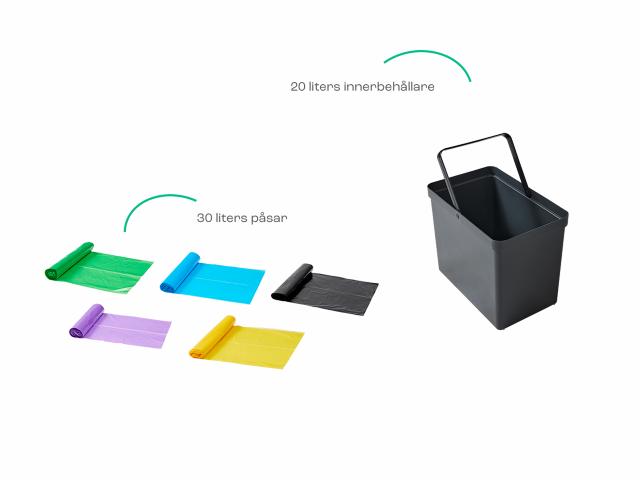 För innerbehållaren med en kapacitet på 20 liter måste du använda påsar på 30 liter.